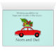 Personalizable Mano dibujó un coche retro con regalos. Puede cambiar el verso y el destinatario, así como el color de fondo.