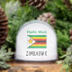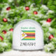 El globo de nieve personalizado muestra la bandera de Zimbabue y la palabra ZIMBABWE abajo. Arriba, agregue un nombre en letras verdes. Regalo de feriado de Guay o obsequio de medias.