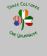 Las banderas de Italia, Irlanda y los Estados Unidos de América (EEUU) se encuentran en las hojas de este shamrock, diseñado para celebrar el Día de San Patricio, el 4 de julio, y las festividades italianas. Se sienta sobre un fondo de cuadrados verdes y claros. Arriba están las palabras TRES CULTURAS. Abajo, UN NOMBRE. Las palabras están en verde oscuro, estilo celta, letras circulares. Agregue su nombre en el lugar adecuado para una apariencia personalizada. ¿Necesitas un regalo personalizado? Solo agrega el nombre de otra persona.