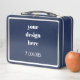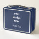 Color: azul Adorable y duradero, nuestra metalizado caja de almuerzo es perfecta para los enamorados del estilo clásico. Personaliza el anverso y el reverso con las imágenes, texto y diseños que quieras y diseña una fiambrera increíblemente divertida para tus hijos o para ti. Dimensiones: 6,75" l x 8,625" ancho x 3,75" h Peso: 12 oz. Fabricado con placa de estaño de seguridad para alimentos y duraderos Material interior seguro para el Personalizar solo frente o frente y espalda Elección de 6 colores base Mangos de plástico negro colapsables Reclamación de CPSIA Este producto es adecuado para edades de 5 años