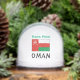Globo de nieve personalizado con la bandera omaní y la palabra OMÁN debajo en negro. Hay un espacio para agregar un nombre para un toque personalizado. O, si desea crear un regalo, simplemente agregue el nombre de otra persona. Hermoso regalo de vacaciones. Diversión para rellenar calcetines.