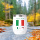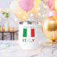 El tumbler termal personalizado de vino incluye la bandera italiana verde, blanca y roja o Il Tricolore. Debajo está la palabra ITALIA, también en la tricolor. Arriba hay un lugar para tu nombre, en letras verdes, para añadir un aspecto fresco. O bien, cree un regalo personalizado agregando el nombre de otro. Podría ser divertido para juegos en reuniones familiares, grupos de viajes y clubes. Bonito regalo del Día de la Madre para mamá.