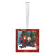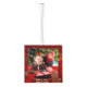 Añade 4 de tus fotos y un mensaje personal en este adorno de vacaciones con un diseño de copo de nieve rojo y dorado. Añade tu mensaje al final del adorno. Sube tus propias fotos para un regalo de los grandes Navidades, perfecto para tu Primera Navidad Juntos, Primera Navidad de los bebés, fotos de la familia y regalos para los abuelos!
