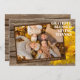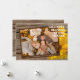 Única, elegante, de moda, bonito y decorativa tarjeta de fiesta de Acción de Gracias. Única, elegante, de moda, bonito y decorativa tarjeta de fiesta de Acción de Gracias. AGRADECIMIENTO GRATIFICADO DANDO GRACIAS texto y habitación al personalizar o personalizar con una foto y nombres (o apellido) de su elección. Con bonitas Mamáes de otoño amarillas cálidas y clásicas flores en una casa de campo rústica de aspecto gris y aspecto templado inspirado en tablas de madera de pino diseño de fondo. Y un poema de bienvenida de temporada de personalizable en el reverso de la tarjeta.