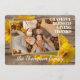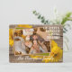 Única, elegante, de moda, bonito y decorativa tarjeta de fiesta de Acción de Gracias. Única, elegante, de moda, bonito y decorativa tarjeta de fiesta de Acción de Gracias. AGRADECIMIENTO GRATIFICADO DANDO GRACIAS texto y habitación al personalizar o personalizar con una foto y nombres (o apellido) de su elección. Con bonitas Mamáes de otoño amarillas cálidas y clásicas flores en una casa de campo rústica de aspecto gris y aspecto templado inspirado en tablas de madera de pino diseño de fondo. Y un poema de bienvenida de temporada de personalizable en el reverso de la tarjeta.