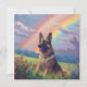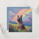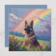 Una tarjeta de simpatía conmemorativa del Pastor Alemán personalizada con una bella pintura de un Pastor Alemán en una colina paradisíaca con un hermoso arcoiris sobre la cabeza. Simbolizar al perro pastor alemán ha pasado el puente arcoiris al cielo doggy. Puede personalizarlo con el nombre de su perro pastor alemán o cualquier otro texto en el reverso de la tarjeta. Hace un homenaje especial o un regalo de solidaridad para cualquier amante del perro pastor alemán si su querido perro ha pasado.