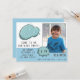 Discurso de Personalizado Azul Bubble Boy Invitación al cumpleaños. Invitación de cumpleaños personalizada para sus amigos y familia. Carga tu foto y personaliza la tarjeta con tu texto. La tarjeta tiene un marco de nube personalizado azul y un esquema de color azul y blanco. Genial como invitación de cumpleaños para la fiesta de cumpleaños del niño.