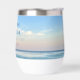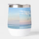 Este pintoresco regalo de vino de Destin Florida con fotografía de la playa es el suntuoso atardecer rosa y naranja que toca suavemente las olas del océano sobre la arena y el césped marino. Hermoso recuerdo de trineo marítimo para una boda de vacaciones o destino con fecha de viaje personalizada y apellido familiar para su lugar de vacaciones favorito.