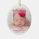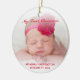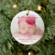 ¡Una manera dulce de recordar esa preciosa primera Navidad! Personalizar con el nombre de su hijo, fecha de nacimiento y foto. La imagen es la misma en ambos lados del adorno. ¡Un regalo de vacaciones perfecto para los padres, abuelos y todo el mundo especial para su hijo! Diseño ©Rosalind Moore, Diseños de las Lanes de cerezo.