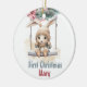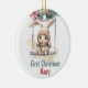 Eleva tu decoración de vacaciones con nuestro ornamento personalizado Baby First Christmas, con un conejito con encanto en tonos cálidos. Añade un toque personal a tu ambiente vacacional. Ornamento de bebé. Personaliza con el nombre del bebé y el año, al otro lado puedes poner una imagen del bebé, y cambiar todo lo que quieras