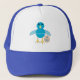 Este gorra impresionante presenta a un personalizado adorable de una chica azul. La chica tiene un vientre azul pálido y alas azules más oscuras y cabeza con un pico y pies amarillos. Junto a la chica hay un pequeño huevo. Hay texto de personalizable para que pueda personalizar este diseño con la edad y el nombre del destinatario.