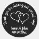 Personalizado boda con mantos, gracias pegatinas por favores de partido, regalos, etc. Elegante diseño de tipografía en blanco y negro con el logo de doble corazón. Elegante plantilla de caligrafía escrita a mano con fecha y nombre de pareja recién casada / novia y novio. Color del fondo del personalizable. También se puede utilizar como sellos para sobres redondos. Suministros y accesorios de moda para fiestas casados. Manejo de bonitos con gráficos de corazones interconectados.