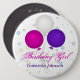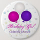Globos púrpuras, blancos y rosados lindos, botón del cumpleaños. Personalice añadiendo un nombre.
