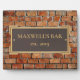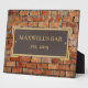 Añada sus datos emblemáticos, empresariales o conmemorativos a esta placa de mesa que parece una réplica de una placa conmemorativa de bronce en una pared de ladrillo.