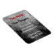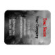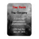 Un imán de tarjetas de visita con rojo, blanco y negro destruido, gruesas cartas personalizados contra un camino embrujado con cuervos y un cielo nublado en la luna.