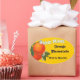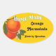 Un pegatina personalizado con una cocina vintage, arte de naranjas con flores pequeñas. En la parte superior se lee Home Made in personalizado letter in white con un contorno azul, se agrega el título del ingrediente y el nombre en letras curly azul retro en un fondo naranja. Haga clic en Personalizar para agregar o restar texto, cambiar el estilo de las letras, los colores de fondo e incluso guardar la etiqueta de relleno de personalizado para más adelante.