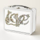 Sus iniciales pueden ser monogramadas en un lado, sólo hágannos saber qué dos letras o números A a Z en funda superior e inferior en inglés, de cero a 9 para usar. Se están poniendo a disposición varias versiones del alfabeto aquí, así que encontrarás una gran variedad de opciones de diseño con la categoría Cat a la que sigo agregando, Whew! ¡Tantos gatos! Tu elección de la camada. Y más en camino. Gatos resultantes de mi tipo de letra Catphalbet, caracteres caligráficos artesanales de Art Nouveau Feng Shui cada uno con una actitud única. Un alfabeto gato sin precedentes. Por otro lado, un fascinante gato de abulón en una serie de tonalidades metálicas de profundidad con joyas de carácter arte auténtico tridimensional mira hacia atrás con cariño. Los gatos están decorados con brillantes metales y perlas, con piedras preciosas y deslumbrantes. Bloquea esta lonchera si obtienes una. Lo garantizo como el tipo de arte que la gente roba, que vale la pena, mejor consigue uno en cada tipo. ¡Gracias por ayudar literalmente al artista a alimentar a los gatos!