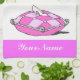 Una toalla de personalizado con letras blancas en la zapatilla de cristal de rosa y Cenicienta sobre una almohada de rosa claro y oscuro de princesa, arte antiguo restaurado de un dibujo vintage para un libro de cuentos.