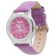 reloj de personalizado con diseño de flor de loto lindo. Relojes de muñeca personalizados para niños. Idea única de regalo de cumpleaños para chicas. Crea una para una hija especial, nieta, prima más linda, amiga, hija, nieta, hermanita pequeña o grande, mamá, vegetariana, etc. Diseño divertido con números y elegante plantilla de tipografía. También es agradable como regalo de Navidad para las vacaciones. Incluye banda de color púrpura. Añadir su propio nombre o letras iniciales en monograma.