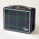 La antigua caja metalizado de almuerzo, de estilo antiguo, se sirve en el clásico estampado de lona azul oscuro, negro y verde Black Watch. El texto en blanco está listo para personalizarse o como una buena idea de regalo.