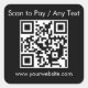 Personalizar tu paquete comercial, papel y carteles con nuestra plantilla de hoja pegatina "QR Code", "Scan Here u otro texto" y "web address here" (dirección web aquí) de fácil uso. Simplemente agrega el sitio web o la aplicación de pago al código QR habitual y ajusta el texto para agregar un sitio web, un lema de la empresa o un mensaje. Con un fondo blanco clásico, su marca de negocios destacará y presentará todo su papel, embalaje y mezcla con una identidad de marca profesional. Una solución de marca rápida y fácil para todo tipo de negocios, perfecta tanto si es un comerciante en línea, una tienda emergente o un bistró tradicional, un sándwich o una cafetería. Disponible en una gama de colores de fondo pegatina. Para mayor flexibilidad, puede cambiar fácilmente el color de fondo del pegatina, el color del texto y el estilo del texto en la Herramienta de diseño de Zazzle: simplemente pulse "editar usando la herramienta de diseño". Coincide con los colores de su marca para el embalaje y el merch de productos promocionales.