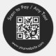 Personalizar tu paquete comercial, papel y carteles con nuestra plantilla de hoja pegatina "QR Code", "Scan Here u otro texto" y "web address here" (dirección web aquí) de fácil uso. Simplemente agrega el sitio web o la aplicación de pago al código QR habitual y ajusta el texto para agregar un sitio web, un lema de la empresa o un mensaje. Con un fondo negro, su marca de negocios realmente destacará y presentará todo su papel, embalaje y mezcla con una identidad de marca profesional. Una solución de marca rápida y fácil para todo tipo de negocios, perfecta tanto si es un comerciante en línea, una tienda emergente o un bistró tradicional, un sándwich o una cafetería. Disponible en una gama de colores de fondo pegatina. Para mayor flexibilidad, puede cambiar fácilmente el color de fondo del pegatina, el color del texto y el estilo del texto en la Herramienta de diseño de Zazzle: simplemente pulse "editar usando la herramienta de diseño". Coincide con los colores de su marca para el embalaje y el merch de productos promocionales.