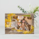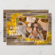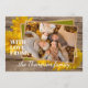 Única, elegante, de moda, bonito y decorativa tarjeta de fiesta de Acción de Gracias. Cute CON AMOR DE texto y habitación a personalizar o personaliza con una foto y nombres (o apellido) de tu elección. Con adorables Mamáes cálidas de otoño amarillas cálidas, las calabazas florales en una casa de campo rústica de aspecto gris y aspecto templado inspirado en el diseño de fondo de tablas de madera de pino. Y un poema de bienvenida de temporada de personalizable en el reverso de la tarjeta.