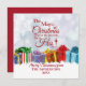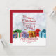 Elegante carta cristiana de Navidades con un mensaje, "La magia de los Navidades no está en los regalos sino en Su presencia". Esta tarjeta de Navidades personalizados tiene la opción de personalizarla con el apellido y año de la familia. Diseño © por Nayda Liz Rivera