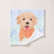 Te encantará este adorable cachorro con un suéter naranja claro sobre texturas salpicadas de color agua. Productos de tocador e invitaciones a la ducha para bebés.