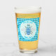 Este impresionante vaso de vidrio muestra una imagen gráfica de una linda abeja azul de bebé con piernas negras y ojos turbios. Tiene un cuerpo azul pálido y difuso con rayas azules brillantes y una bonita antena azul en su nublada cabeza. Sus delicadas alitas tienen un patrón azul pálido en el suelo. El diseño también incluye girasoles azules bonitos. El texto es personalizable para que puedas incluir el nombre de tu maravilloso bebé y un mensaje de tu elección acerca de la más reciente y más linda abeja de la ciudad.