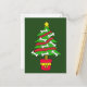 Un lindo árbol de Navidad personalizado cubierto de mejillones rojos y huesos de perro. La imagen tiene un fondo verde oscuro.