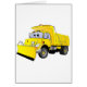 Un caprichoso camión de basura amarilla listo para golpear los sitios de construcción y transportar las cargas pesadas o arar las carreteras cubiertas de nieve para proveer un viaje seguro por carretera.