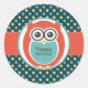 El polka lindo pegatina con personalizado de búho en el medio. Personalizar la redacción para que se ajuste a su ocasión. Ya sea un fiesta nocturno o una ducha de bebé para tus amigos, este colorido pegatina de diseño es genial para decorar tu evento. Póngalo en los favores de la fiesta para los invitados o utilícelo como sellador de sobres al enviar la invitación.