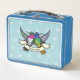 Muestra tu amor por los animales, el exterior y el mundo natural con esta caja de almuerzo de los colibríes "Lover de la Naturaleza". Utilice "Personalizar esta plantilla" para cambiar el texto "Lover de la naturaleza" si lo desea. La decoración es de estilo personalizado, pero poco profunda en el "zafiro de cola dorada" (derecha), mezcla de azules y verdes iridiscentes con un toque de naranja y amarillo en la cola; y el colibrí de cola ancha (izquierda), verde con una pechuga crema y una llamativa garganta rosa o roja, y puntas blancas sobre las plumas de cola oscura.