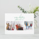 personalizado verde feliz navidad 6 foto collage feliz tarjeta de vacaciones. Esta elegante tarjeta incluye un collage de fotos de 3 fotos en la parte delantera y 3 en la parte trasera con texto y fondo personalizado.