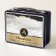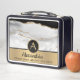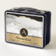 Esta falsa caja de oro y blanco y negro agate de colores es la manera perfecta de llevar tu almuerzo con estilo. El moderno patrón de mármol de piedra de cristal negro, blanco y purpurina de oro falso le aporta un toque sofisticado a su caja metálica.