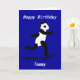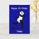Añadir nombre al frente y mensaje y nombres dentro. Un panda sobre una tabla de patinaje, avanzando a toda velocidad. Fácil de personalizar con herramientas de zazzle. Diversos orígenes de color y también disponibles con la edad del personalizable. Mostrado aquí con el nombre de Tommy