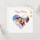 Personalizado corazón familiar y flores doradas en la tarjeta blanca de felicitación Holidays. Ideal para Navidades y saludos de Año Nuevo. El texto se puede personalizar para otros eventos.