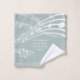 Elegante cortina de ducha de cristal blanco y de cristal de mar Christian Scripture, diseñada con notas musicales. Hay un texto de personalizable que dice "DEJEN TODO LO QUE TENGA RESPIRACIÓN A JEHOVAH", que se basa en el Salmo 150 y que puedes personalizar para que se ajuste a tus necesidades. En la esquina inferior derecha hay un personalizable MONOGRAM.