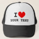 Personalizado corazón me encanta el sombrero de camionero. Haz tu propio gorro divertido. Ejemplos: I corazón burritos, i corazón wine, i corazón you etc. Personalice esta plantilla con su propio texto divertido.