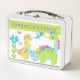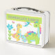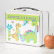 Esta adorable caja de almuerzo metalizado es perfecta para cualquier niño amante de los dinosaurios. La caja de almuerzo presenta un colorido diseño personalizado de dinosaurios, y puede ser personalizada con el nombre o iniciales de su hijo. La lonja está hecha de metalizado de calidad. Cuenta con un asidero robusto para facilitar su transporte y un cierre ajustable para mantener la seguridad alimentaria.