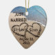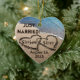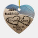 FYI: El adorno de forma cardíaca con este diseño ahora está disponible en acrílico. Añade fácilmente tus propios nombres personalizados o cualquier texto (el ejemplo mostrado dice: "Solo casado" con nombres de la novia y el novio en los corazones y la fecha) para personalizar este hermoso adorno popular en forma de corazón con una foto original de dos corazones escritos en la arena a lo largo del agua azul del océano para representar amor y romance. Gran concepto para el amor, los viajes, las primeras vacaciones navideñas juntas y el próximo verano salven a los bodas de citas. Un adorno divertido, lindo, personal y único de honor para dar a esa persona especial, novia o novio, novia y novio o pareja de novios. Este diseño está de un lado y también está disponible en ambos lados.