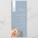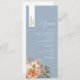 Elevar la recepción con este menú boda personalizado, con un elegante fondo azul polvoriento, una suave acuarela de melocotón y un nombre de invitado impreso en una franja vertical, perfecto para combinar un menú con una tarjeta de lugar. Ideal para la primavera, el verano, el boho o los bodas rústicos, la carta personalizado le aporta un toque refinado y coordinado a sus mesas. Coincide maravillosamente con la suite Boda floral Dusty Blue y Peach.