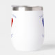 El diseño de un vaso de vino térmico personalizado muestra un corazón funky lleno de la bandera de Francia. Arriba hay un lugar para personalizar un nombre. A continuación, añádase una ocasión (por ejemplo, el Día de la Bastilla, el cumpleaños, la reunión, etc.) y el año. O, simplemente agrega tu propio texto. La bandera francesa es azul, blanca y roja en tres franjas verticales. Ideal para llevar a reuniones familiares, clubes y grupos de viajes. Las madres y las papas de ascendencia francesa lo apreciarán por un regalo del Día de la Madre o el Día del Padre.