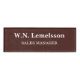 Personalizado Elegant Wood-Grain Name Tag. Haga una impresión profesional con esta elegante etiqueta con letras blancas en negrita. Perfecto para entornos de oficina, reuniones de clientes y ferias, combina un aspecto clásico con una legibilidad clara. Resalte su título y nombre con estilo intemporal.