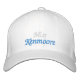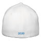 Gorra mostrado en blanco con una punción de bordado de dos tonos que se muestra en color turquesa y lustre. Front tiene un personalizado de texto de ejemplo esperando que usted lo personalize y la parte posterior tiene elección del año, mostrado con 2020 en la parte posterior. Personalizar este artículo o compra tal cual.