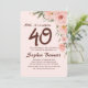 ¡Haz que tu celebración de 40 años sea verdaderamente única con esta invitación floral de personalizable! Personalice cada detalle, desde el nombre hasta los detalles del evento, para que coincida con su estilo. Con elegantes flores de color rosa de agua y un guión elegante, este diseño es perfecto para una celebración sorpresa de fiestas o hitos. Crea una invitación única que refleja tu día especial.