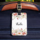 Etiqueta para el portaequipajes en monograma diseñada por el personalizado, que incluye un monograma personalizado sobre un diseño de ramo floral de acuarela en la parte delantera, información de contacto editable en la parte posterior.