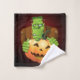 Feo y divertida Halloween Frankenstein Monster sosteniendo una calabaza, hecha originalmente en Vector Technique Copyright BluedarkArt The ChameleonArt.