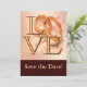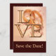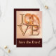 El boda de amor tiene diseño. Marrón chocolate y oro. Guarda las tarjetas fotográficas de fecha, Personalice con su foto de compromiso. Fácil de hacer, tarjetas de boda personalizadas y guardar las tarjetas de fecha. Añade un toque de elegancia con este conjunto de bodas dorados y marrones. Presenta un esquema de color dorado y marrón, con un par de bandas bodas doradas para hacer la "o" en LOVE. Personalizar con sus detalles. Bonito y diseño de novias significativo. Este elemento está disponible como una colección completa de bodas que incluye invitaciones, tarjetas RSVP, Guardar las fechas, imanes, Pegatinas y más!